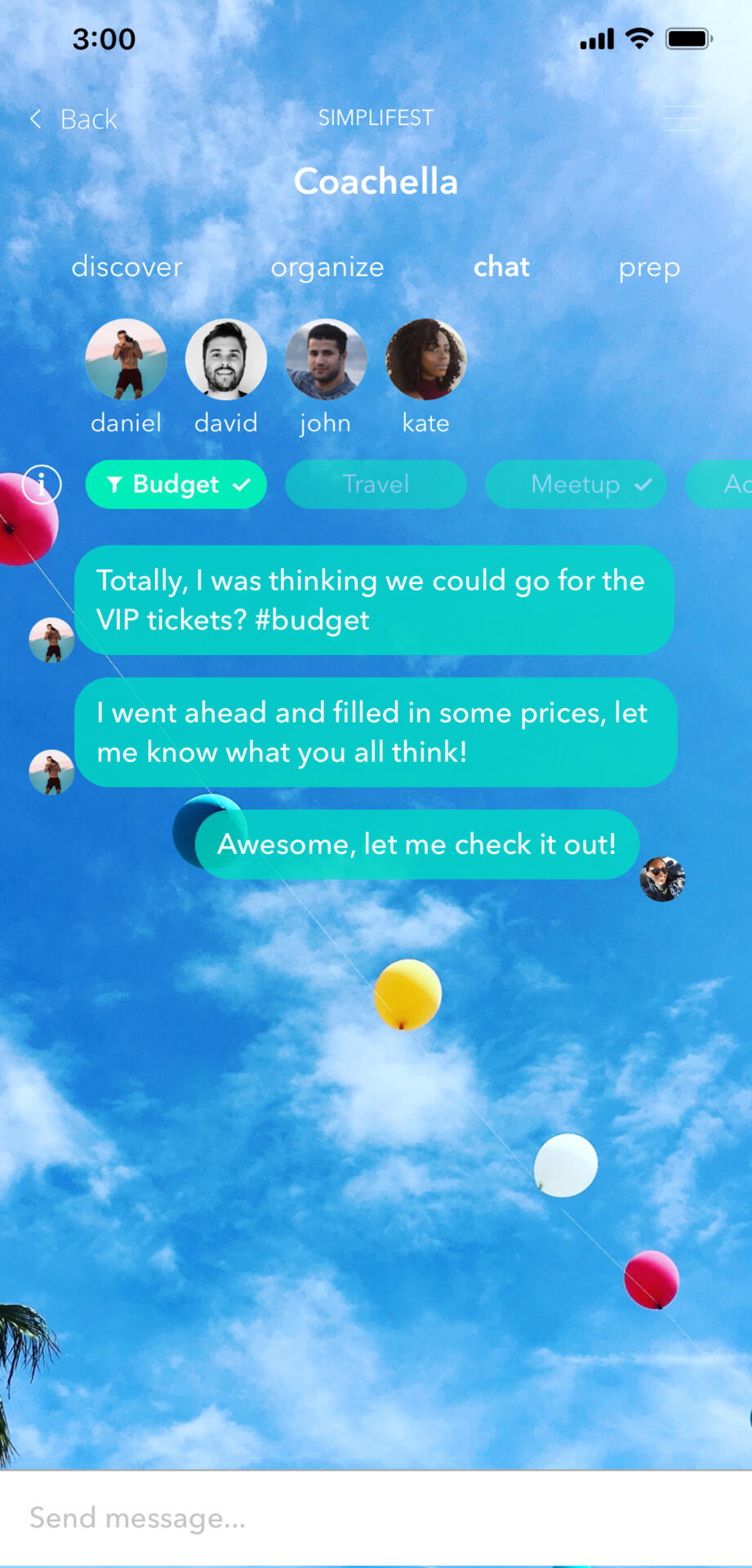 “My favorite part of the app was the chat section and how the chat was divided into travel, budget, etc.” - Donald V.